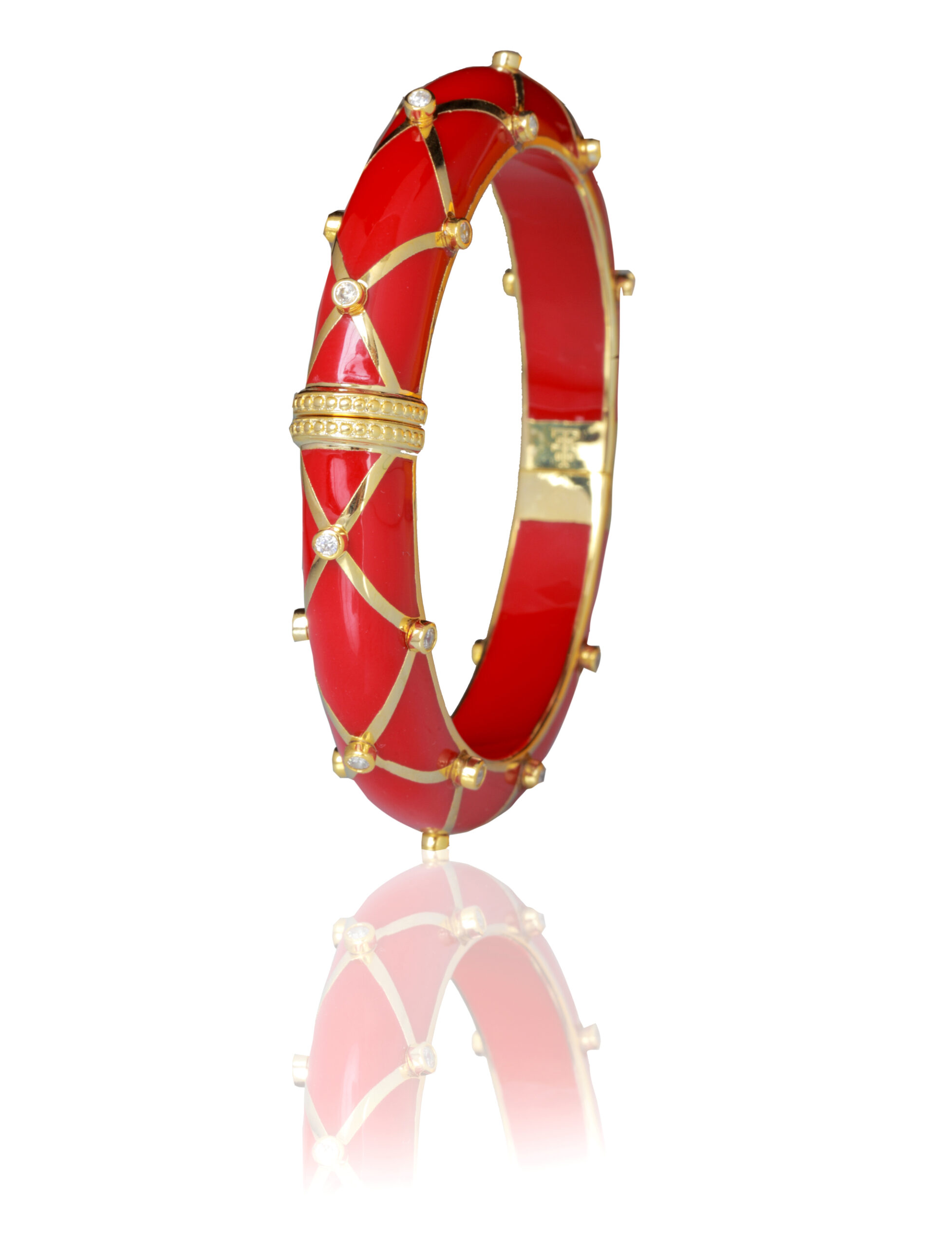 Handcrafted using resin & zircons set in gold plated brass